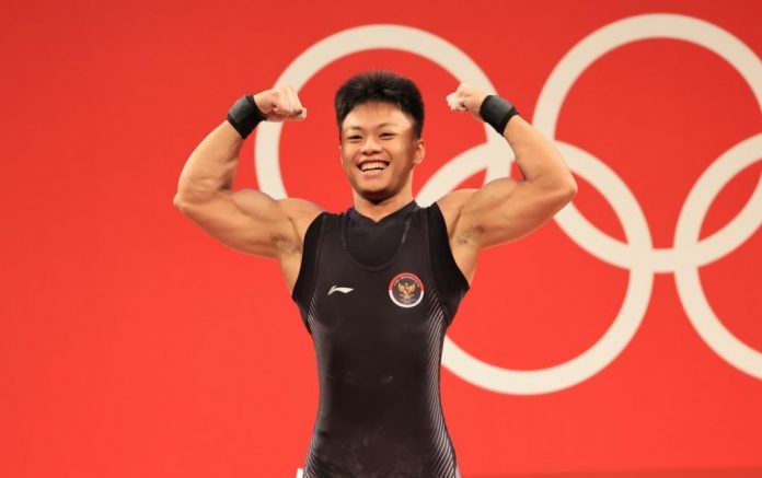 Tokyo – Lifter Indonesia Rahmat Erwin Abdullah meraih medali perunggu pada cabang angkat besi kelas 73kg putra di Olimpiade Tokyo 2020, Rabu (28/7/2021).
