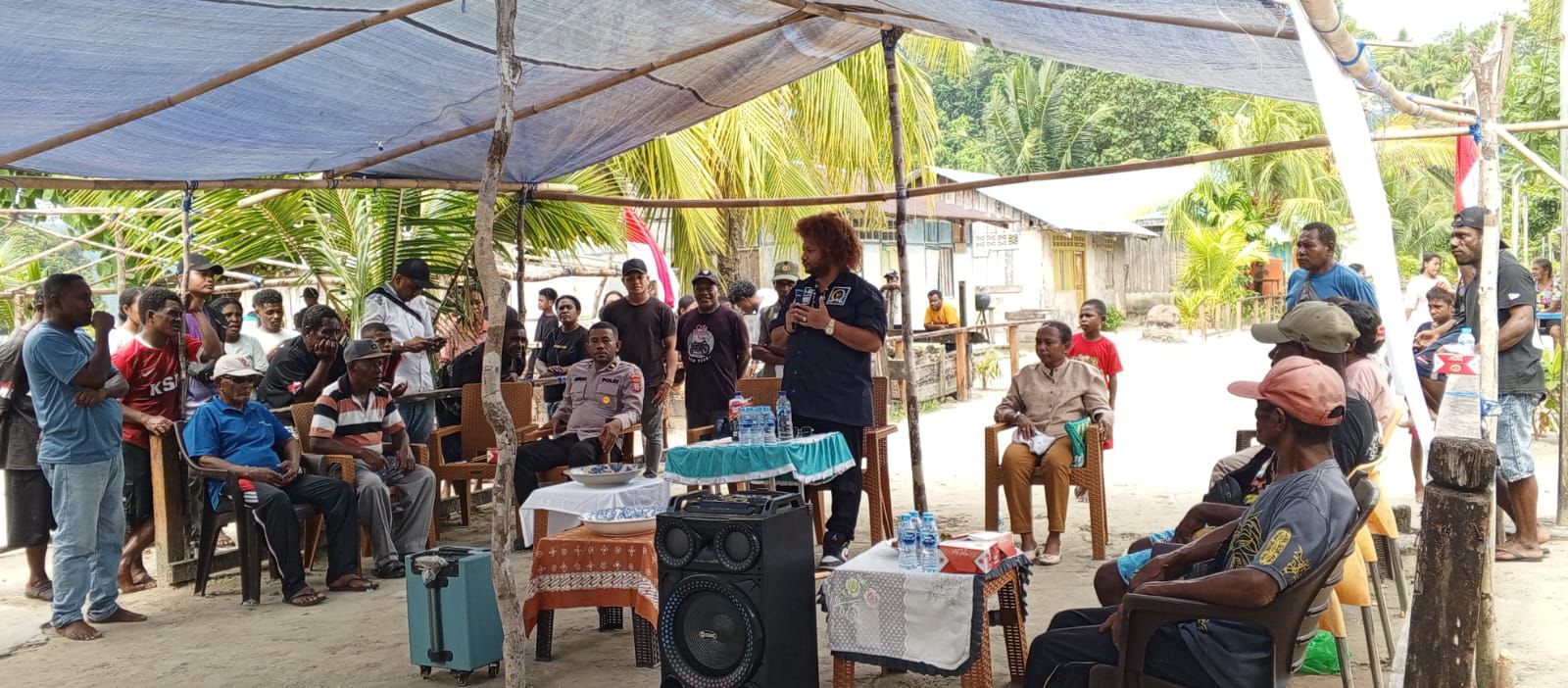RAJA AMPAT – Anggota DPD RI Dapil Papua Barat Daya, Paul Finsen Mayor (PFM) yang sedang melakukan kunjungan kerja ke Pulau Kawei, Kampung Selpele, Distrik Waigeo Barat, Kabupaten Raja Ampat menerima aspirasi penting dari Masyarakat Adat Suku Kawei.