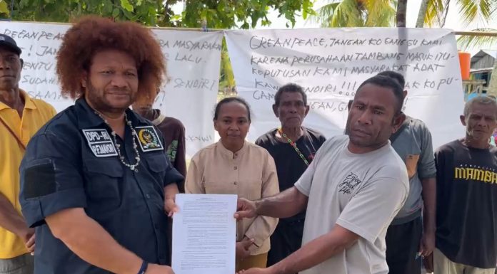“Kami Masyarakat Adat Suku Kawei sedih dan kecewa dengan dicabutnya IUP PT KSM hanya karena laporan Greenpeace yang tidak bertanggungjawab dan tidak menghormati kami selaku masyarakat adat pemegang hak ulayat,” kata Luther Ayello, perwakilan Masyarakat Adat Suku Kawei saat membacakan pernyataan sikap, Jumat (21/11/2025).