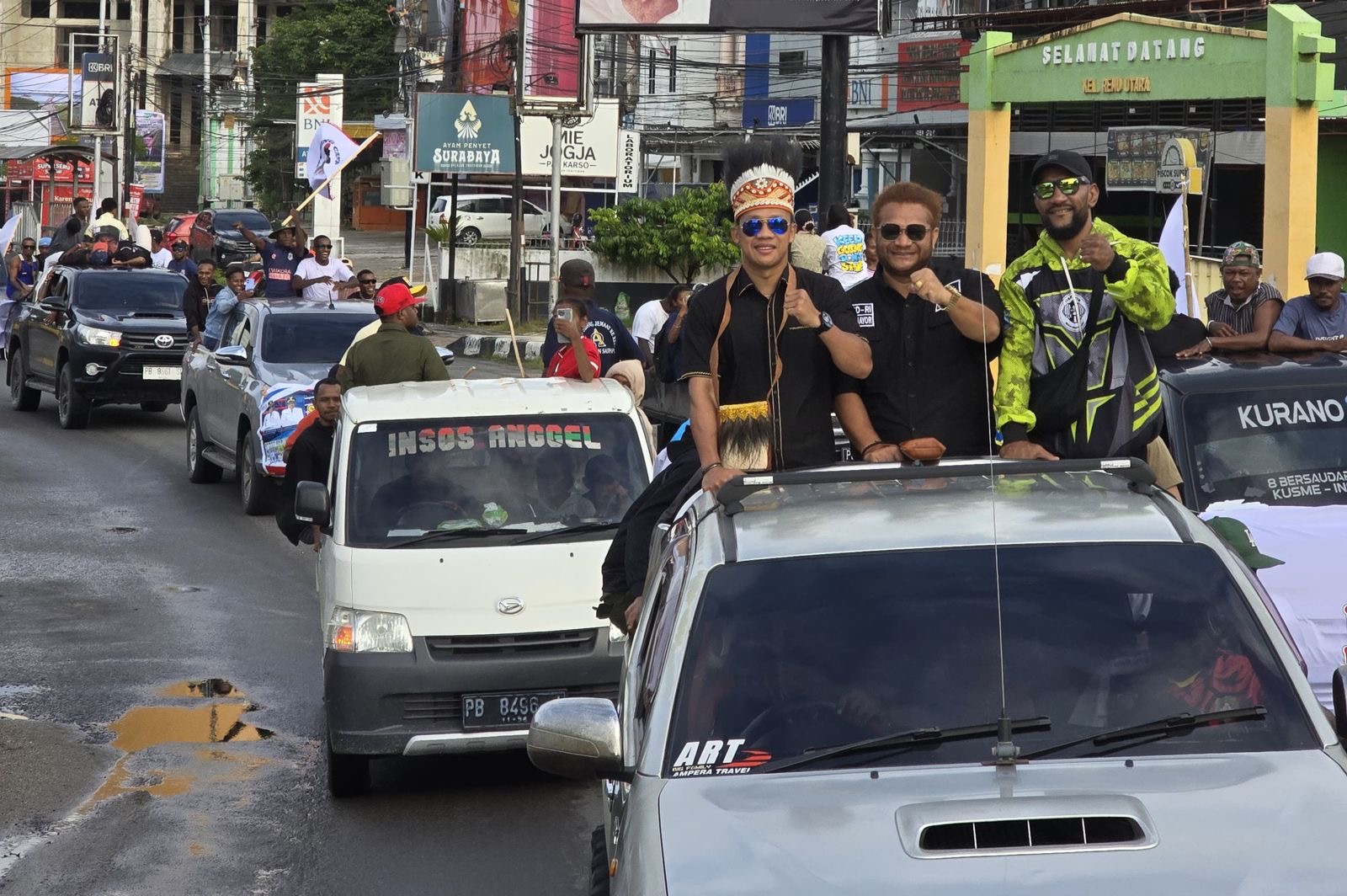 Kemudian, Daud, Senator Paul Finsen Mayor dan Petinju Geisler Ap diarak dengan mobil terbuka berkeliling Kota dan Kabupaten Sorong. Sepanjang jalan, masyarakat menyambut dengan antusias.